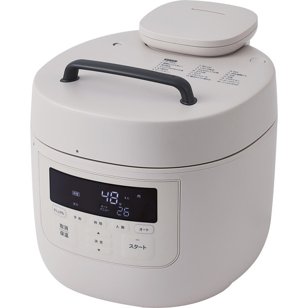 内容:消費電力=1200Wコード長約1.2m容量=調理容量3.5l呼び容量(満水容量)5l使用最高圧力ゲージ=100Kpa1台12役:圧力、無水、蒸し、炊飯、スロー調理、温め直し、低温調理、炒め、発酵、温度調理、低温&圧力調理、圧力糖質オフ炊飯自動メニュー数=100付属品=計量カップ、蒸しかご、パッキン(内ふた用、予備)、レシピブック、使い方ガイド
