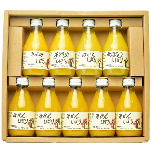 内容:100%ピュアジュース180ml(みかん×5、きよみ×1、不知火×1、はっさく×1、あまなつ×1)