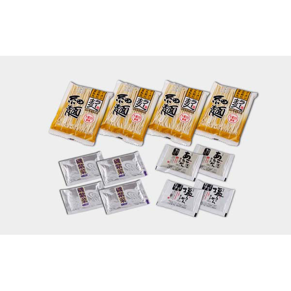 内容:ラー麦麺80g×4、あごだし醤油スープ40g×2、岩塩スープ36g×2、磯紫菜0.3g×4