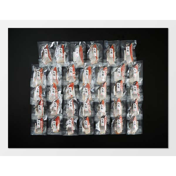 脂がのった人気の紅鮭を一枚ごと個別真空しました。長期の冷凍保存にも便利。お召し上がりになる分だけを冷蔵庫で自然解凍後、焼き魚としてご調理ください。
