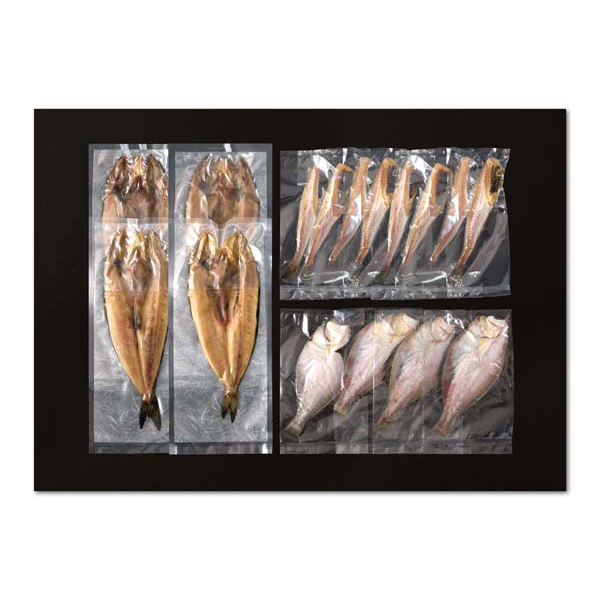 内容:ほっけ開き一夜干し200g×4、宗八かれい一夜干し80g×4、姫鱈(丸)一夜干し50g×8