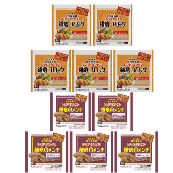 内容:レンジでカンタン鎌倉コロッケ225g(45g×5)×5、レンジでカンタン鎌倉黄金メンチ200g(40g×5)×5