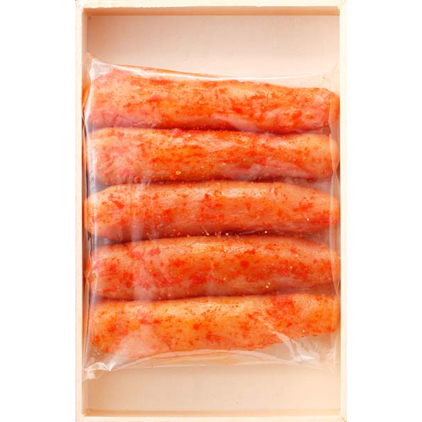 清酒と、昆布、柚子胡椒などを使った当社独自の調味液に新鮮なたらこをじっくりと漬け込みました。ぴりっとした辛さのなかにも深い味わいとコクのある辛子明太子です。