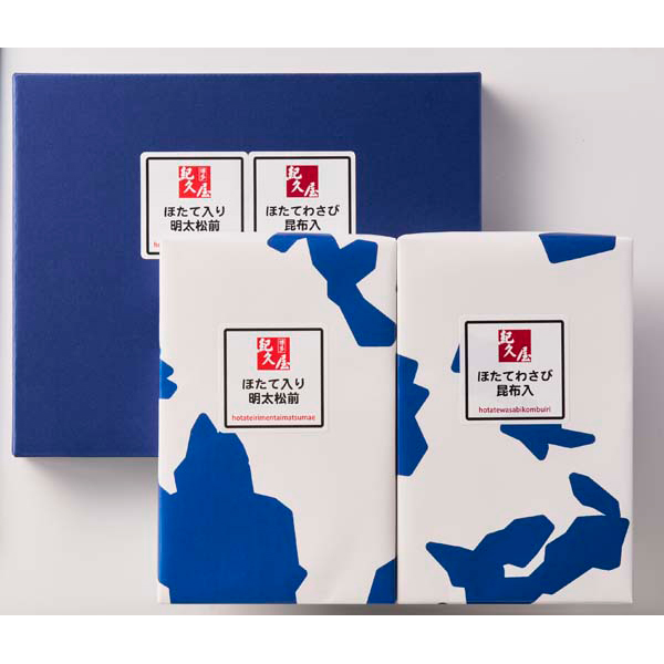 内容:ほたて入り明太松前220g、ほたてわさび昆布入り220g