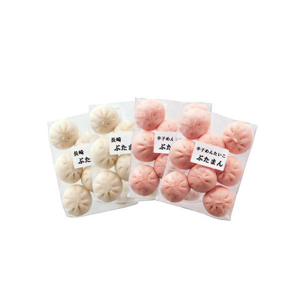 内容:ぶたまん×2袋(26g×8個入)、辛子めんたいこぶたまん×2袋(26g×8個入)