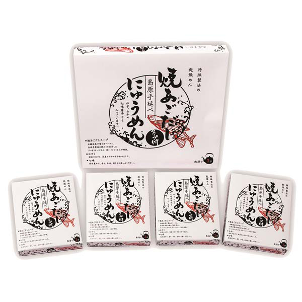 内容:焼あごだしで食べる島原手延べにゅうめん(めん50g スープ34g 乾燥具材1g 七味唐辛子0.3g)×4