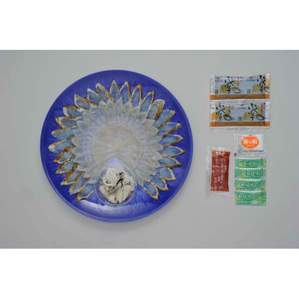 内容:まふく炙り刺身75g、とらふく刺身40g、とらふく刺身古式引き20g、とらふく皮30g、プラスチック皿30cm、ポン酢35g×2、モミジオロシ16g、塩5g、カボス果汁2ml×4 ※刺身皿のデザインは変わる場合がございます。