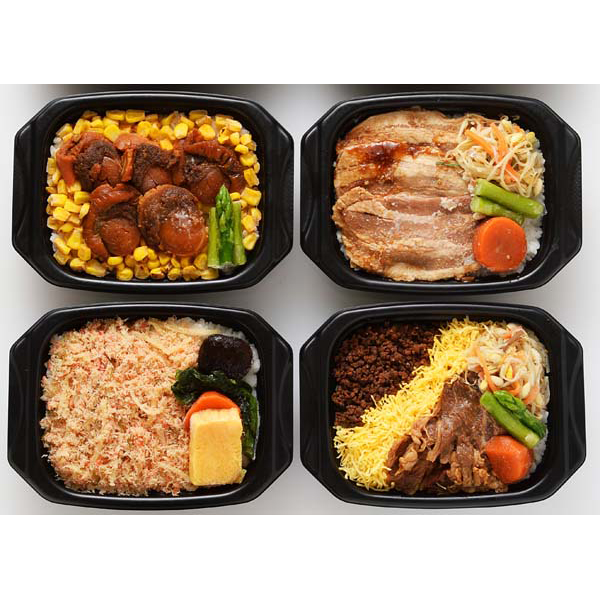 内容:(昔ながらのかに飯、バターコーン帆立弁当、北海道産牛弁当、豚丼×各260g)×各1