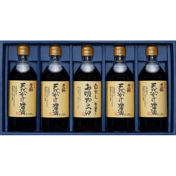 内容:芳醇天然かけ醤油500ml×4 白だしお吸物のつゆ500ml×1