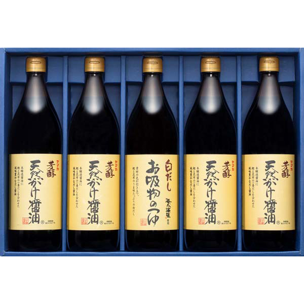 内容:芳醇天然かけ醤油900ml×4 白だしお吸物のつゆ900ml×1