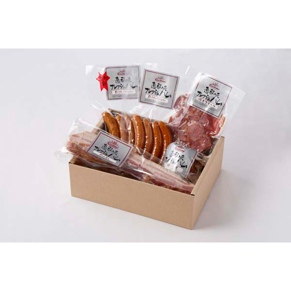 内容:焼豚250g×1、ベーコン250g×1、荒びきポークウィンナー120g×1、ぴり辛ポークウィンナー120g×1、豚タンスモークスライス60g×1