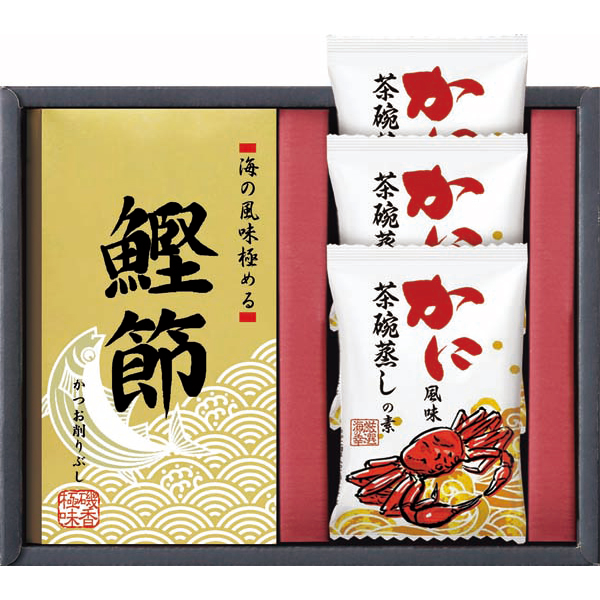 内容:かに風味茶碗蒸しの素×3、柳屋本店 かつお削り節(3g×3袋入)×1