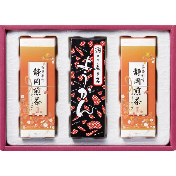 内容:銀座鹿乃子 ようかん200g×1、静岡煎茶ティーバッグ(3g×6袋)×2