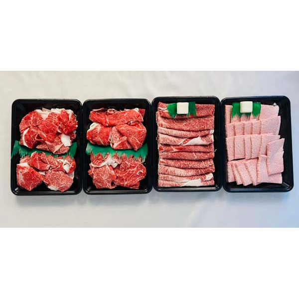 内容:切り落とし300g×2、すき焼400g×1、焼肉350g×1