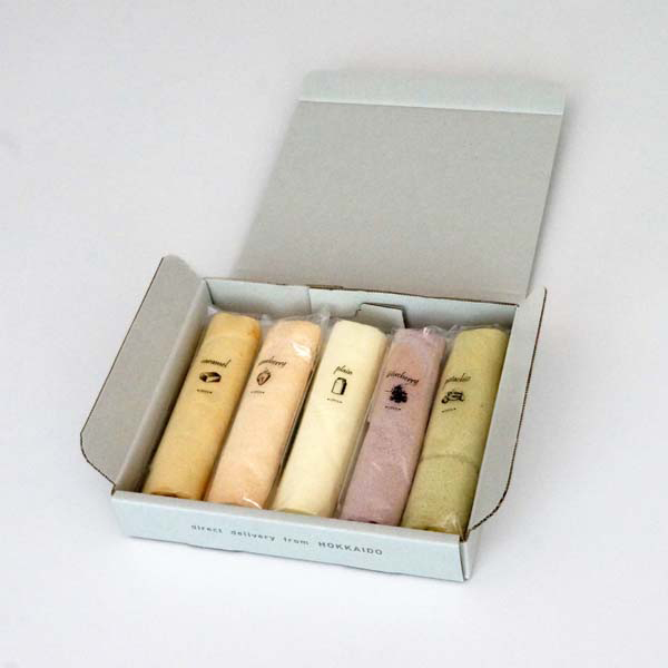 内容:プレーン・キャラメル・ピスタチオ・ストロベリー・ブルーベリー 各1本