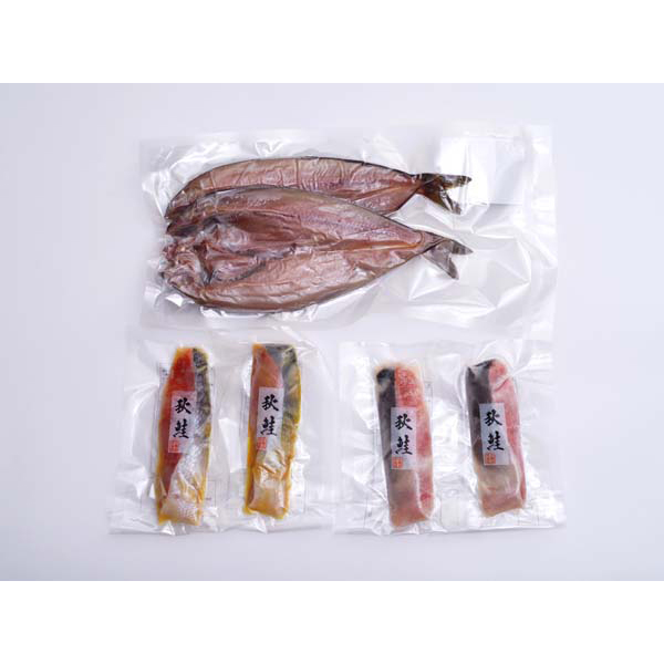 内容:ほっけ(200g×2)×1、秋鮭粕漬切身80g×2、秋鮭西京漬切身80g×2