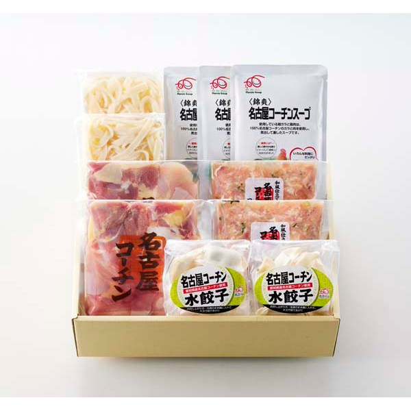 内容:名古屋コーチン正肉切身240g×2、名古屋コーチンつみれ200g×2、名古屋コーチン水餃子96g(6個)×2、きしめん200g×2、名古屋コーチンスープ200g×3