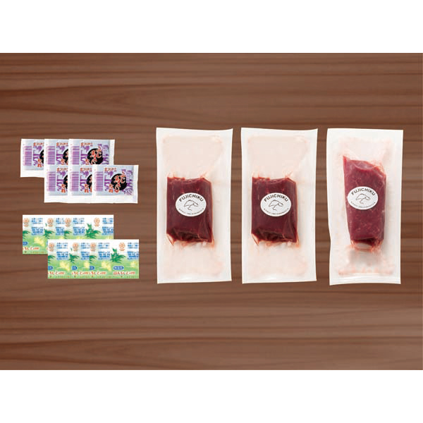 内容:ふじ馬刺し上赤身80g×2、ふじ馬刺しロース80g×1、馬刺し用たれ5ml×6、生姜小袋3g×6