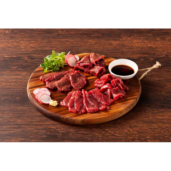 自社牧場育ちの新鮮な馬刺しを産地直送にてお届け致します。もっともポピュラーな赤身肉はモチッとした食感と馬肉本来の旨みを楽しんでいただけます。赤身の中でも更に上質なロースは非常に柔らかく美味しい部位です。是非食べ比べてみて下さい。また、近年はヘルシーミートとして女性からのニーズが高まっています。