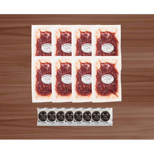 内容:ふじ馬刺しユッケ50g×8、ユッケのたれ10g×8個