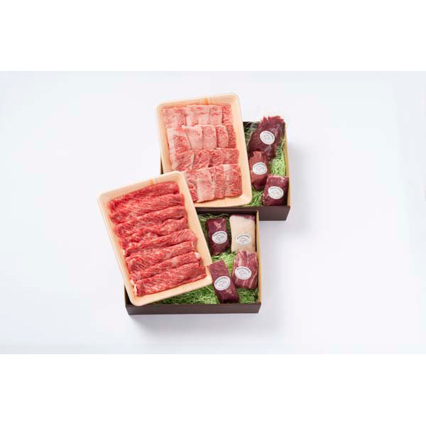 内容:ふじ馬刺し大トロ、中トロ、ロース、たたき、上赤身、フタエゴ各80g×各1、ユッケ50g×1、A5-A4ランク藤彩牛カルビ(バラ)400g×1、モモスライス400g×1、馬刺しのたれ5ml×10、しょうが3g×10、ユッケのたれ10g×1、たたきのたれ20g×1