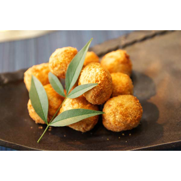 近江牛と玉ねぎをすき焼き風味に調理した牛めしの具です。温めご飯にのせるだけでお召し上がりいただけます。一口サイズのボール型コロッケはおやつやおつまみなど幅広くご利用いただけます。油で揚げて調理ください。