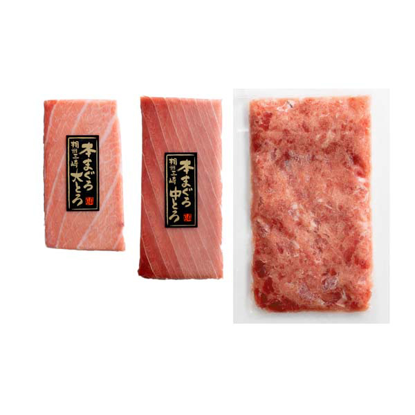 三崎のまぐろ専門の卸問屋が確かな目利きで仕入れ、-50℃の超低温冷凍庫を備えるHACCAP認定工場で徹底した品質管理を行っています。天然本まぐろの詰合せを産地直送にてお届け致します。大トロの食感は、一度食べたら忘れられません。極上の脂のノリを是非味わってください。中トロは、濃厚な旨みと上品な口どけを感じられます。厚みのある柵は贅沢に楽しめます。また、まぐろ問屋自家製のすきみは粗めに叩くことで粒感と甘みのある赤身の味わいが一緒に楽しめます。天然本まぐろの味をたっぷりとご賞味ください。お刺身はもちろん、手巻きずしやまぐろ丼、和え物もおすすめです。まぐろが、いつもの食卓を鮮やかに彩ります。