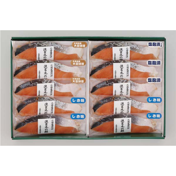 内容:桜鱒切身(しお味)70g×4、桜鱒切身(北海道大豆味噌)70g×3、桜鱒切身(塩麹漬)70g×3