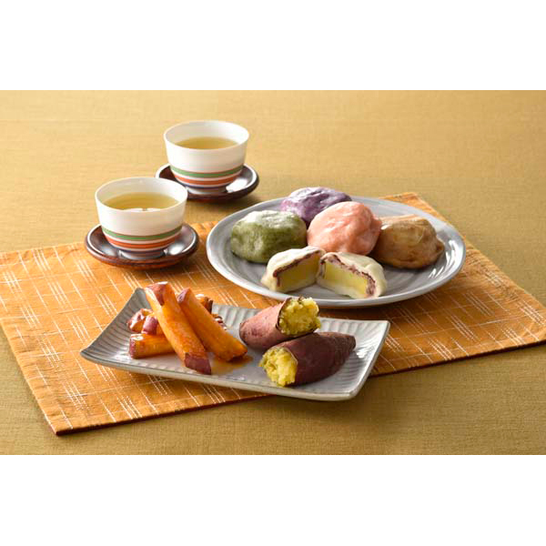内容:いきなり団子10個(プレーン×2、紫芋×2、黒糖×2、よもぎ×2、桜×2)、おやついも500g×1、大学芋300g×1