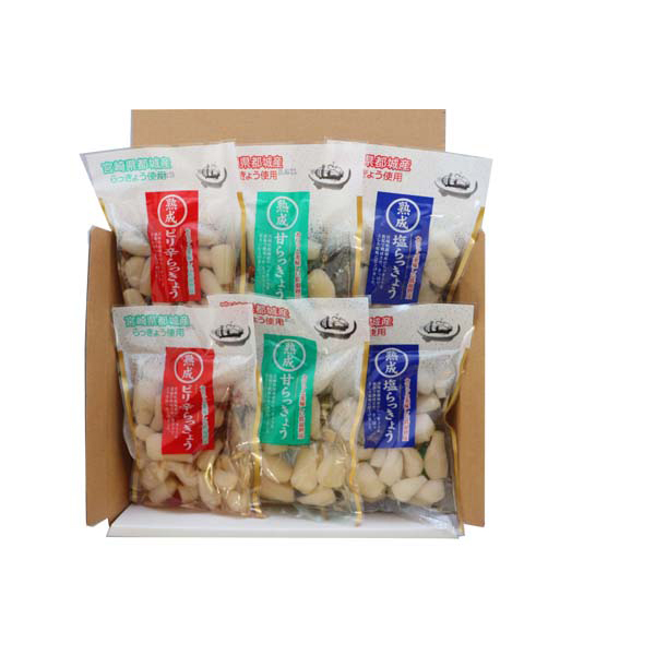 宮崎県都城産のらっきょうを低塩・低温で漬込み熟成させた3種の詰合せです。