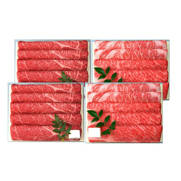 三田屋総本家が厳選した黒毛和牛のすき焼き・しゃぶしゃぶ用。味わい深いモモ・ロースをそれぞれ使いやすいパックに分け合計4パックでお届け致します。