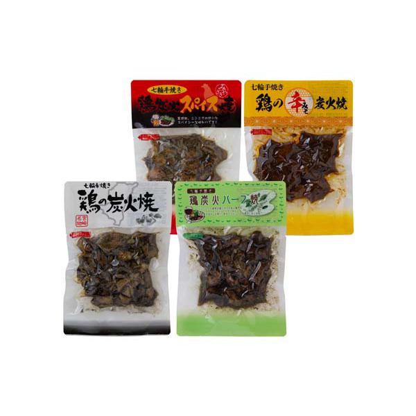 内容:鶏の炭火焼180g、鶏炭火スパイス焼150g、鶏炭火ハーブ焼150g、鶏の辛みそ炭火焼150g