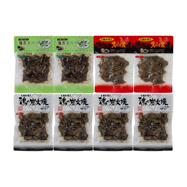 内容:鶏の炭火焼180g×4、鶏炭火ハーブ焼150g×2、スパイス焼150g×2