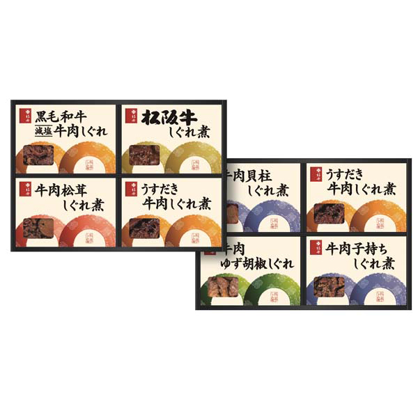 内容:松阪牛しぐれ煮50g×1、うすだき牛肉しぐれ煮50g×2、黒毛和牛 減塩牛肉しぐれ50g×1、牛肉松茸しぐれ煮60g×1、牛肉子持ちしぐれ煮50g×1、牛肉ゆず胡椒しぐれ60g×1、牛肉貝柱しぐれ煮50g×1