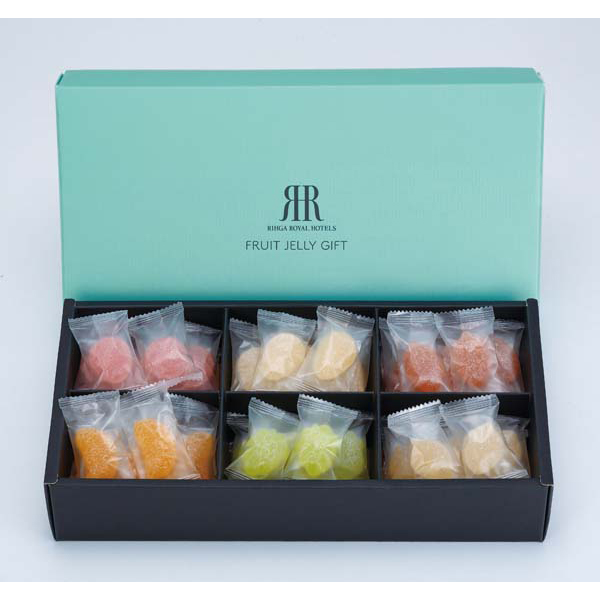 リーガロイヤルホテルが監修した、国産とちおとめ苺果汁、岡山県産白桃ピューレ、岡山県産アレキサンドリアマスカットピューレ、国産温州みかん果汁、瀬戸内産レモン果汁、山形県産ラ・フランス果汁を使用したフルーツゼリーです。