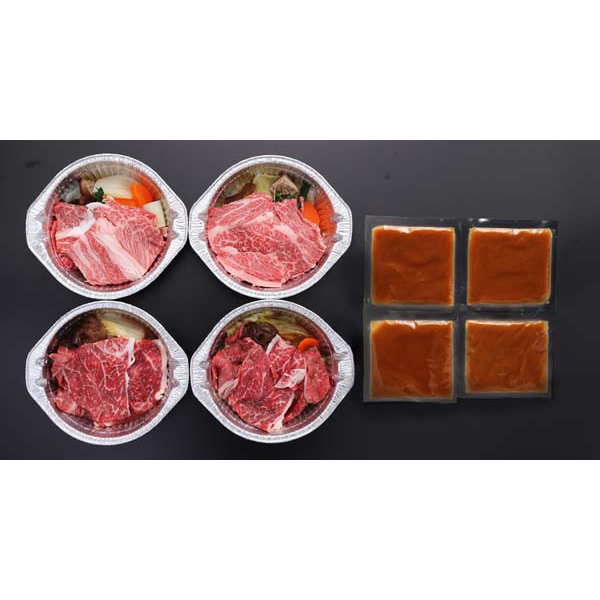 内容:霜降り鍋250g×2個、赤身鍋250g×2個、すき焼のタレ130g×4