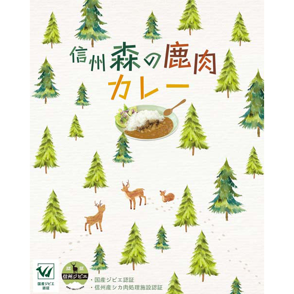 お肉屋さんのこだわりシリーズから発売された森の鹿肉カレーは害獣駆除の目的で捕獲された信州の鹿を長野県の認証施設で加工し出荷された100%信州産の鹿肉を使用。玉ねぎ・スパイス・赤ワインで煮込んだ鹿肉カレー。