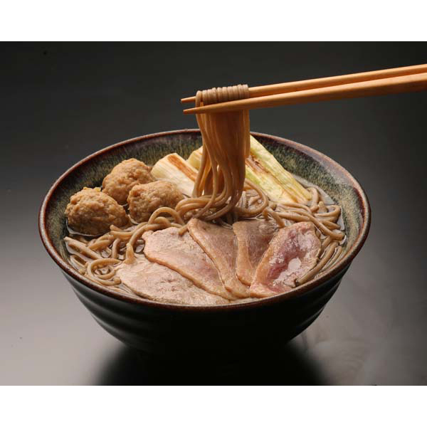内容:冷凍ゆで蕎麦麺 170g×3、合鴨モモスライス 130g×2、合鴨つくね15玉、鴨つゆ 25g×4