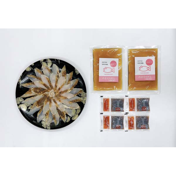 内容:のどぐろ炙り刺し120g、のどぐろだし(出汁茶漬け用)100g×2、ポン酢14g×4、もみじおろし2.5g×4