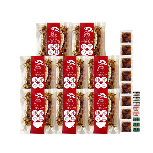 内容:豚丼の具(醤油味)130g×8、タレ(醤油味)10g×8、(山椒・胡椒)×各3袋、七味×2袋