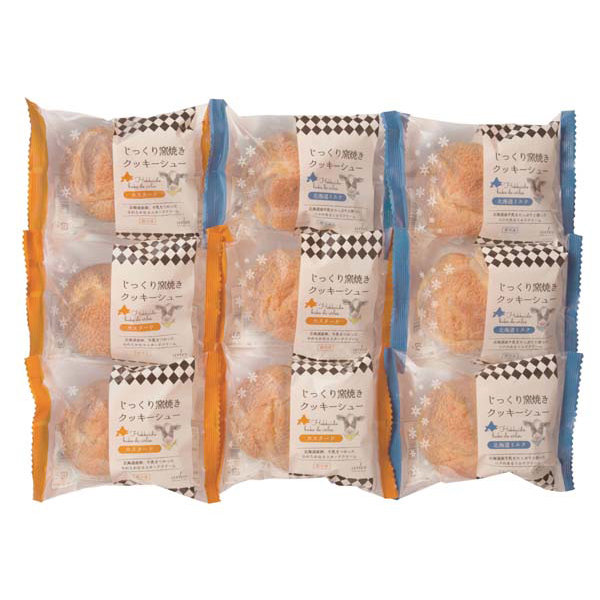 内容:じっくり窯焼きクッキーシューカスタード×5、じっくり窯焼きクッキーシュー北海道ミルク×4