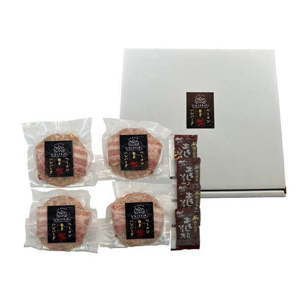 北海道 「肉の山本×なないろキッチン」 ベーコン巻ハンバーグ4個セット