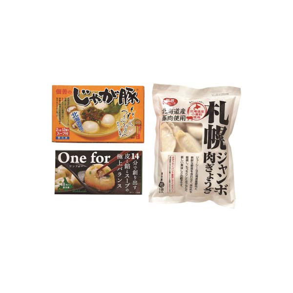 内容:じゃが豚(12玉入・スープ×2)、札幌ジャンボ肉ぎょうざ×16、One for 焼き小籠包×8