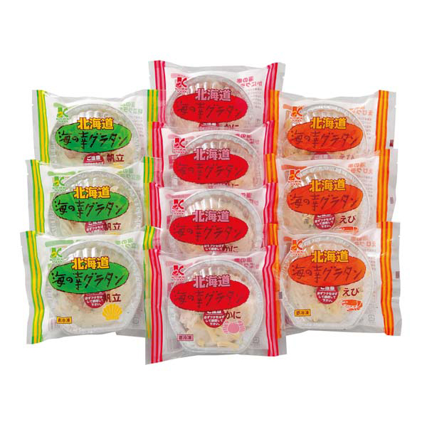 内容:海の幸グラタン(えび、帆立)各125g×各3、海の幸グラタン(かに)125g×4