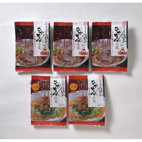 内容:ひでちゃん小麦かに甲羅みそラーメン158g×3、ひでちゃん小麦担々麺ラーメン175g×2