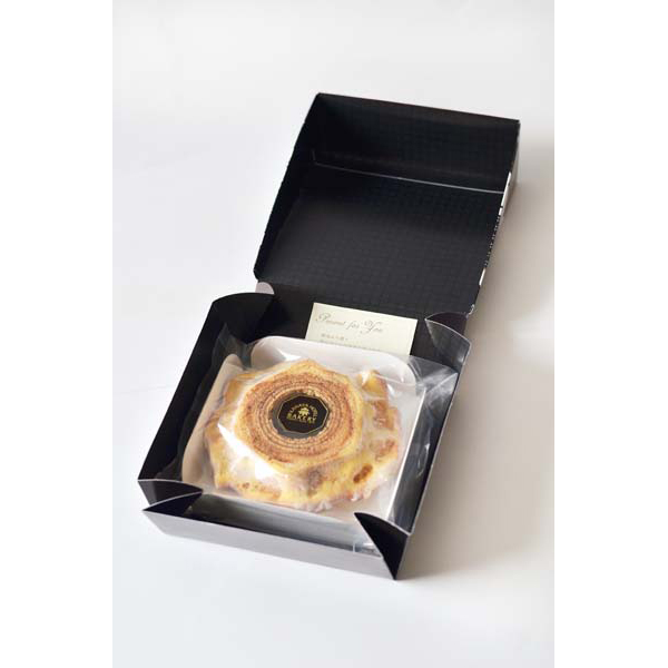 発酵バターの香りともちもちした食感が特徴です。表面がごつごつしたハードタイプのバウムクーヘンです。