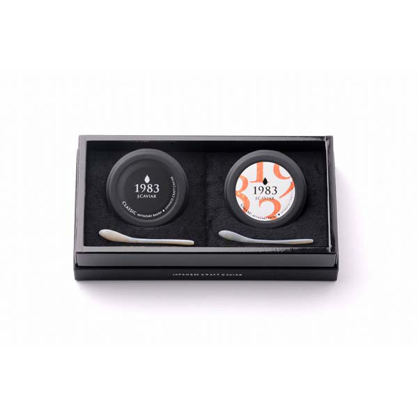 内容:シベリアチョウザメキャビア20g、シベリアチョウザメ和風キャビア20g、シェルスプーン2本