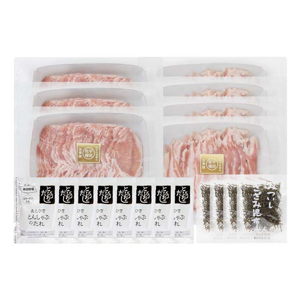 内容:金華豚ローススライス300g×3、金華豚バラスライス200g×4、とびうおだし50ml×8、きざみ昆布10g×4