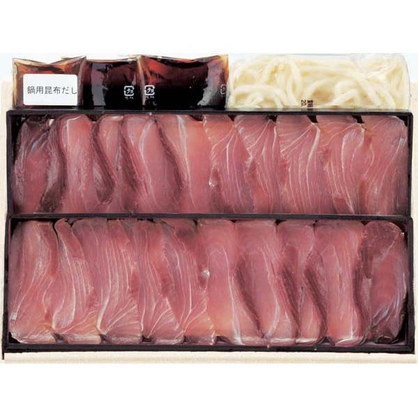 内容:鍋だし昆布エキス60g×1、ポン酢50g×2、ぶりしゃぶ用切身150g×2、冷凍うどん180g