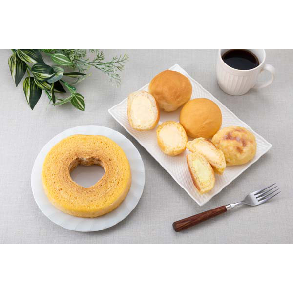 内容:くりーむパンカスタード×2、塩バターくりーむパン×2、くりーむメロンパン(カスタード×1、メロン×1)、バームクーヘン×1